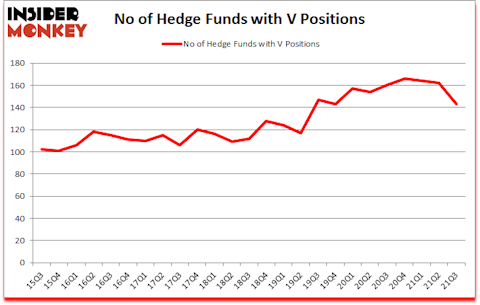 Is Visa Inc (NYSE:V) the right pick for your portfolio? Prominent investors were becoming less confident. The number of bullish hedge fund positions were trimmed by 19 in recent months. Visa Inc (NYSE:V) was in 143 hedge funds’ portfolios at the end of the third quarter of 2021. The all time high for this statistic is 166. Our calculations also showed that V ranked #8 among the 30 most popular stocks among hedge funds (click for Q3 rankings).