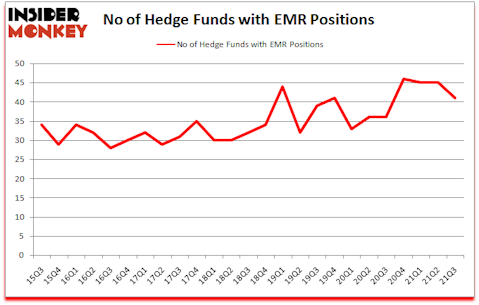 Emerson Electric Co. (NYSE:EMR) was in 41 hedge funds’ portfolios at the end of the third quarter of 2021. The all time high for this statistic is 46. EMR investors should be aware of a decrease in hedge fund interest of late. There were 45 hedge funds in our database with EMR holdings at the end of June. Our calculations also showed that EMR isn’t among the 30 most popular stocks among hedge funds (click for Q3 rankings).