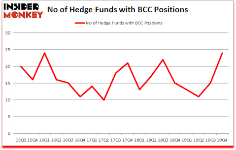 At Q4’s end, a total of 24 of the hedge funds tracked by Insider Monkey were long this stock, a change of 60% from the third quarter of 2019. The graph below displays the number of hedge funds with bullish position in BCC over the last 18 quarters. With hedge funds’ capital changing hands, there exists an “upper tier” of key hedge fund managers who were boosting their stakes significantly (or already accumulated large positions).