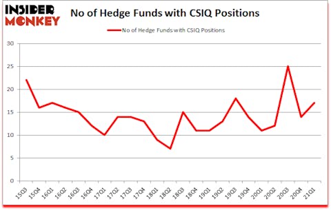 Canadian Solar Inc. (NASDAQ:CSIQ) was in 17 hedge funds’ portfolios at the end of the first quarter of 2021. The all time high for this statistic is 25. CSIQ has seen an increase in support from the world’s most elite money managers recently. There were 14 hedge funds in our database with CSIQ holdings at the end of December. Our calculations also showed that CSIQ isn’t among the 30 most popular stocks among hedge funds (click for Q1 rankings).
