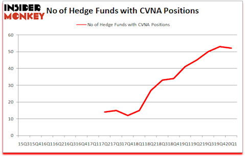 Carvana Co. (NYSE:CVNA) shareholders have witnessed a decrease in hedge fund sentiment of late. CVNA was in 52 hedge funds’ portfolios at the end of March. There were 53 hedge funds in our database with CVNA holdings at the end of the previous quarter. Our calculations also showed that CVNA isn’t among the 30 most popular stocks among hedge funds (click for Q1 rankings and see the video for a quick look at the top 5 stocks).