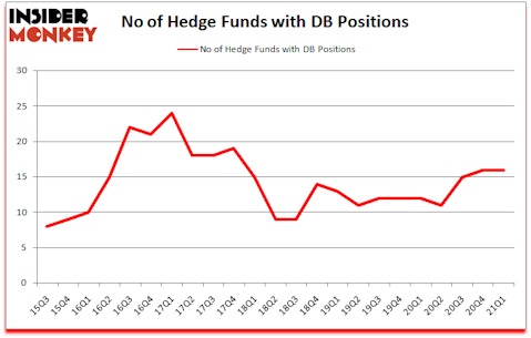 At Insider Monkey, we scour multiple sources to uncover the next great investment idea. For example, pet market is growing at a 7% annual rate and is expected to reach $110 billion in 2021. So, we are checking out the 5 best stocks for animal lovers. We go through lists like the 15 best Jim Cramer stocks to identify the next Tesla that will deliver outsized returns. Even though we recommend positions in only a tiny fraction of the companies we analyze, we check out as many stocks as we can. We read hedge fund investor letters and listen to stock pitches at hedge fund conferences. You can subscribe to our free daily newsletter on our homepage. Keeping this in mind let’s take a glance at the latest hedge fund action encompassing Deutsche Bank Aktiengesellschaft (NYSE:DB).