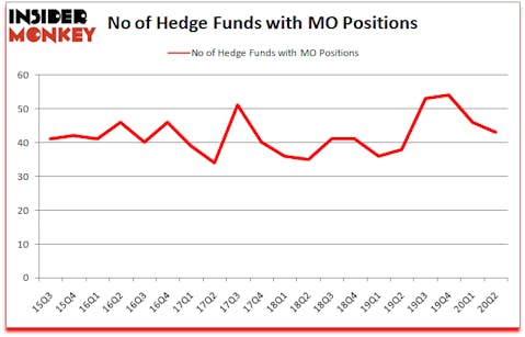 Is Altria Group Inc (NYSE:MO) ready to rally soon? The best stock pickers were cutting their exposure. The number of bullish hedge fund bets dropped by 3 in recent months. Altria Group Inc (NYSE:MO) was in 43 hedge funds’ portfolios at the end of the second quarter of 2020. The all time high for this statistics is 54. Our calculations also showed that MO isn’t among the 30 most popular stocks among hedge funds (click for Q2 rankings and see the video for a quick look at the top 5 stocks).