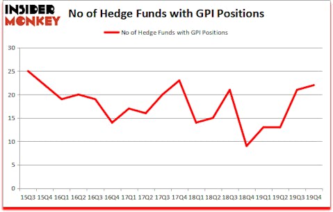 Heading into the first quarter of 2020, a total of 22 of the hedge funds tracked by Insider Monkey held long positions in this stock, a change of 5% from the previous quarter. Below, you can check out the change in hedge fund sentiment towards GPI over the last 18 quarters. With hedgies’ positions undergoing their usual ebb and flow, there exists a select group of key hedge fund managers who were adding to their stakes substantially (or already accumulated large positions).