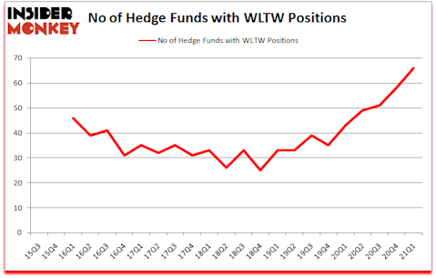 Is Willis Towers Watson Public Limited Company (NASDAQ:WLTW) a safe investment today? Investors who are in the know were becoming hopeful. The number of bullish hedge fund bets increased by 8 recently. Willis Towers Watson Public Limited Company (NASDAQ:WLTW) was in 66 hedge funds’ portfolios at the end of March. The all time high for this statistic was previously 58. This means the bullish number of hedge fund positions in this stock currently sits at its all time high. Our calculations also showed that WLTW isn’t among the 30 most popular stocks among hedge funds (click for Q1 rankings).