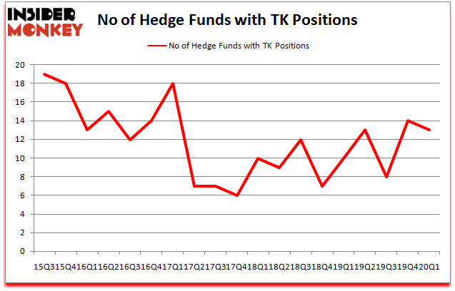 At Q1’s end, a total of 13 of the hedge funds tracked by Insider Monkey were long this stock, a change of -7% from one quarter earlier. By comparison, 10 hedge funds held shares or bullish call options in TK a year ago. With the smart money’s sentiment swirling, there exists a select group of key hedge fund managers who were boosting their holdings substantially (or already accumulated large positions).