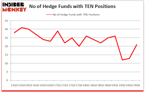 At Q4’s end, a total of 21 of the hedge funds tracked by Insider Monkey were bullish on this stock, a change of 62% from one quarter earlier. By comparison, 25 hedge funds held shares or bullish call options in TEN a year ago. With hedgies’ capital changing hands, there exists an “upper tier” of notable hedge fund managers who were upping their stakes substantially (or already accumulated large positions).