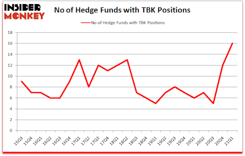 At first quarter’s end, a total of 16 of the hedge funds tracked by Insider Monkey were long this stock, a change of 33% from the previous quarter. On the other hand, there were a total of 6 hedge funds with a bullish position in TBK a year ago. With the smart money’s positions undergoing their usual ebb and flow, there exists a few notable hedge fund managers who were adding to their stakes considerably (or already accumulated large positions).