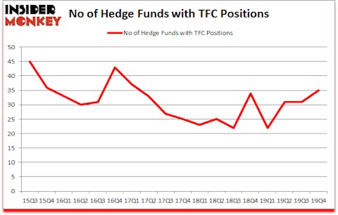 At the end of the fourth quarter, a total of 35 of the hedge funds tracked by Insider Monkey held long positions in this stock, a change of 13% from the previous quarter. Below, you can check out the change in hedge fund sentiment towards TFC over the last 18 quarters. With hedgies’ sentiment swirling, there exists an “upper tier” of key hedge fund managers who were adding to their holdings substantially (or already accumulated large positions).