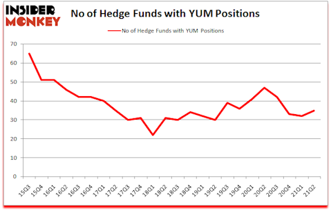 Yum! Brands, Inc. (NYSE:YUM) shareholders have witnessed an increase in hedge fund sentiment lately. Yum! Brands, Inc. (NYSE:YUM) was in 35 hedge funds’ portfolios at the end of June. The all time high for this statistic is 65. There were 32 hedge funds in our database with YUM positions at the end of the first quarter. Our calculations also showed that YUM isn’t among the 30 most popular stocks among hedge funds (click for Q2 rankings).