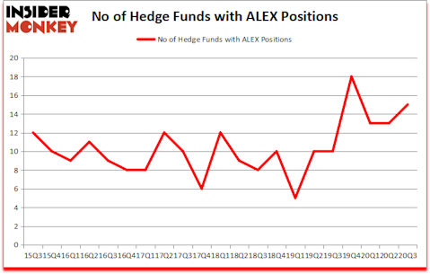 At the end of September, a total of 15 of the hedge funds tracked by Insider Monkey held long positions in this stock, a change of 15% from one quarter earlier. On the other hand, there were a total of 10 hedge funds with a bullish position in ALEX a year ago. With hedge funds’ positions undergoing their usual ebb and flow, there exists an “upper tier” of noteworthy hedge fund managers who were boosting their stakes considerably (or already accumulated large positions).