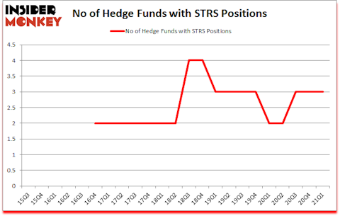 At the end of March, a total of 3 of the hedge funds tracked by Insider Monkey were long this stock, a change of 0% from one quarter earlier. The graph below displays the number of hedge funds with bullish position in STRS over the last 23 quarters. So, let’s examine which hedge funds were among the top holders of the stock and which hedge funds were making big moves.