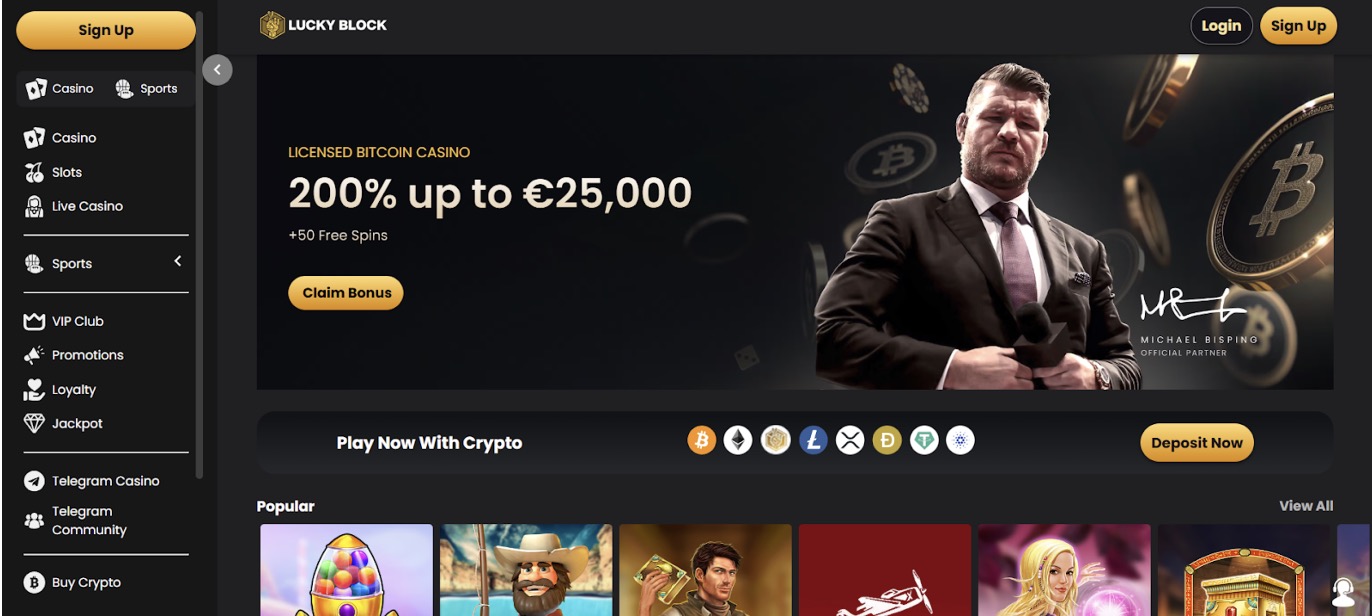 15. Lucky Block — €25,000 WELCOME BONUS: Best for Jackpots