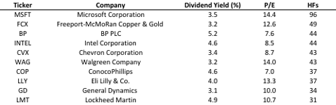 To add to this notion, the dividend stocks we have found are also trading cheap relative to the market with P/E ratios less than 15x earnings. Each stock listed has a market cap of more than $30 billion, a dividend yield of at least 3% and more than 30 hedge funds (of the funds we track; see our full list here) holding ownership. We have ranked these stocks by the number of hedge funds reported to own these stocks at the end of the third quarter, from largest to smallest.