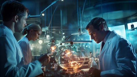 A close-up of a biotechnology machine working on an oncology therapy.