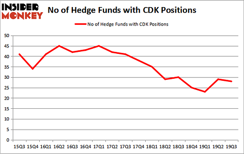 CDK Global Inc (NASDAQ:CDK) was in 28 hedge funds’ portfolios at the end of the third quarter of 2019. CDK investors should pay attention to a decrease in hedge fund sentiment of late. There were 29 hedge funds in our database with CDK holdings at the end of the previous quarter. Our calculations also showed that CDK isn’t among the 30 most popular stocks among hedge funds (click for Q3 rankings and see the video at the end of this article for Q2 rankings).