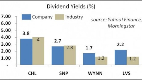 Safeway Inc (NYSE:SWY), the food retailer, pays a 4.3% dividend yield, with only a 32% payout. The company should see margin compression as the company delays passing along price hikes; see how Safeway stacks up against other major grocers. We believe the company’s growth will remain under pressure as the industry sees more non-traditional competitors, such as Whole Foods and Fresh Market, enter the market. Safeway saw same store sales up only 0.1% versus estimates of 2.0% last quarter, and has attracted short interest of 30%. Although we a remain cautious on the company, Ray Dalio of Bridgewater Associates upped his stake 150% during 2Q.