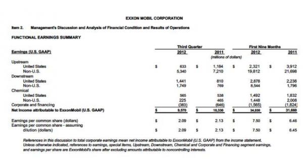 Both names are very sound investments at the present time, but in order to ascertain which should prove to be a superior investment I turned to the most recent quarterly reports. For Exxon: 63% of revenues come from upstream oil and natural gas production, while 33% come from downstream refining operations and the rest result from chemical production (with a small net cost for their financial division). Exxon averaged 2,116,000 barrels of oil-equivalent production per day and 12.25 billion cubic feet per day of natural gas production.