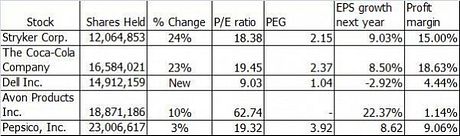 Yacktman initiated a position worth over $151 million in Dell in the fourth quarter. The fund manager is noted to have sold all its former shares in Dell in the second quarter of 2011. The latest purchase is, I believe, in anticipation of a buyout that would take the company private. As of publication time, Michael Dell is reported to be nearing a $23 billion deal with Microsoft and Silver Lake Partners, a private-equity firm, to offer its shareholders $13.50 to 13.75 per share. This will give Mr. Dell the largest position in the company. If successful, it would be the biggest tech leveraged buyout since the financial meltdown. It is also a big move for Mr. Dell in his goal to reposition the company he has founded for the new era. The stock price has been performing robustly in recent months. Currently, the P/E is estimated at 9.03 with a PEG of 1.04.