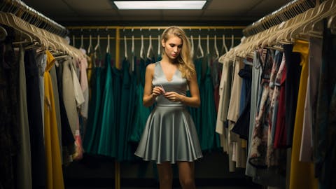 A close-up of a customer trying on a piece of apparel in the retailer’s spacious dressing room, emphasizing the company’s focus on personal care and experience.