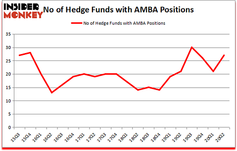Is Ambarella Inc (NASDAQ:AMBA) a bargain? Hedge funds were becoming more confident. The number of long hedge fund bets inched up by 6 lately. Ambarella Inc (NASDAQ:AMBA) was in 27 hedge funds’ portfolios at the end of June. The all time high for this statistics is 30. Our calculations also showed that AMBA isn’t among the 30 most popular stocks among hedge funds (click for Q2 rankings and see the video for a quick look at the top 5 stocks). There were 21 hedge funds in our database with AMBA holdings at the end of March.