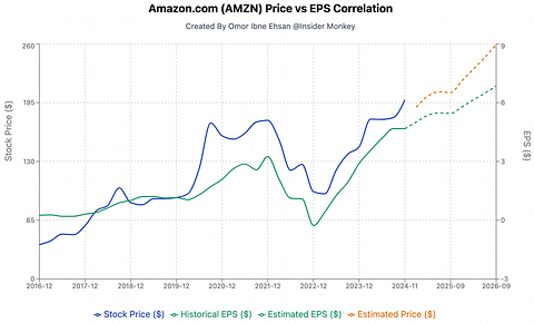 Moreover, custom semiconductor investments—including Trainium and Inferentia chips—reduce dependency on external suppliers like Nvidia and enhance profit margins. There’s a lot more room for bottom-line growth here as Amazon starts to shave down costs by using its own chips and not paying Nvidia’s—frankly—insane markups. The stock is going to follow these bottom-line advances higher, but that’ll only be possible as long as the top line keeps growing and if estimates are right.