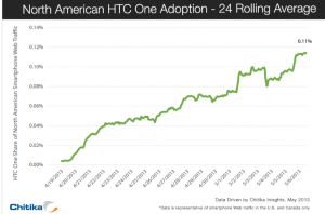 “To quantify this study, Chitika Insights examined a sample of tens of millions of U.S. and Canadian smartphone-based online ad impressions seen over the Chitika ad network. These data sets ranged from April 19th to May 6th, 2013 for the HTC One, and from April 26th to May 6th, 2013 for the Samsung Galaxy S IV.”