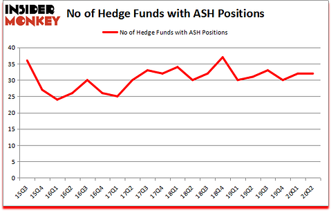 At the end of June, a total of 32 of the hedge funds tracked by Insider Monkey were bullish on this stock, a change of 0% from the previous quarter. Below, you can check out the change in hedge fund sentiment towards ASH over the last 20 quarters. So, let’s find out which hedge funds were among the top holders of the stock and which hedge funds were making big moves.