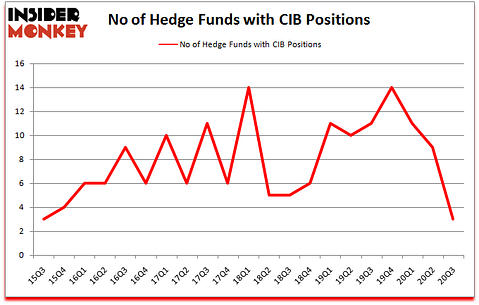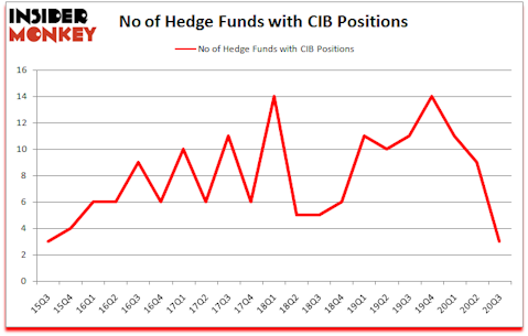 At Q3’s end, a total of 3 of the hedge funds tracked by Insider Monkey held long positions in this stock, a change of -67% from the previous quarter. By comparison, 11 hedge funds held shares or bullish call options in CIB a year ago. So, let’s find out which hedge funds were among the top holders of the stock and which hedge funds were making big moves.