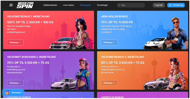 | NeedForSpin | 250% op til 1.500 EUR + 250 FS | 4.5/5 |