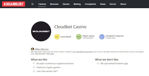 Looking at the casino’s player rating, I can say that I’d rank it way higher! To me, Cloudbet is an example of cryptocurrency casinos done right. The site definitely appeals to the crypto crowd with a vast range of altcoins supported, and the way everything’s organized won’t disappoint. I’d agree with the AskGamblers team that a mobile app wouldn’t hurt. But since everything works nicely on mobile, that’s not a big deal.