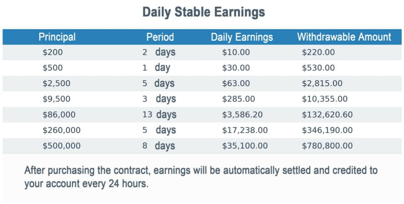 Supports deposits and withdrawals in mainstream currencies such as BTC, ETH, USDT, and XRP. The system automatically settles earnings daily, with instant deposits and no freezes.