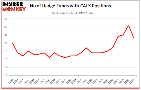 Calix Inc (NYSE:CALX) has seen a decrease in hedge fund sentiment of late. Calix Inc (NYSE:CALX) was in 23 hedge funds’ portfolios at the end of June. The all time high for this statistic is 31. Our calculations also showed that CALX isn’t among the 30 most popular stocks among hedge funds (click for Q2 rankings).