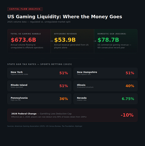 The question facing US gaming regulators is not how to stop capital flight. It is whether the current tax and regulatory framework makes capital flight inevitable—and at what point the $18.09 billion in annual gaming tax revenue begins to contract as the players generating it relocate their wallets to jurisdictions that offer better terms.