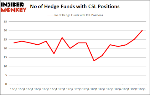 At the end of the third quarter, a total of 30 of the hedge funds tracked by Insider Monkey held long positions in this stock, a change of 20% from the second quarter of 2019. On the other hand, there were a total of 22 hedge funds with a bullish position in CSL a year ago. With hedge funds’ positions undergoing their usual ebb and flow, there exists a few noteworthy hedge fund managers who were boosting their stakes meaningfully (or already accumulated large positions).