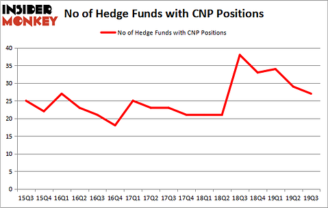 2018’s fourth quarter was a rough one for investors and many hedge funds, which were naturally unable to overcome the big dip in the broad market, as the S&P 500 fell by about 4.8% during 2018 and average hedge fund losing about 1%. The Russell 2000, composed of smaller companies, performed even worse, trailing the S&P by more than 6 percentage points, as investors fled less-known quantities for safe havens. Luckily hedge funds were shifting their holdings into large-cap stocks. The 20 most popular hedge fund stocks actually generated an average return of 41.3% in 2019 and outperformed the S&P 500 ETF by more than 10 percentage points. In this article we will study how hedge fund sentiment towards CenterPoint Energy, Inc. (NYSE:CNP) changed during the third quarter and how the stock performed in comparison to hedge fund consensus stocks.