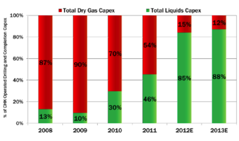 Chesapeake Capital Expenditures Breakdown by Dry Gas vs. Liquids