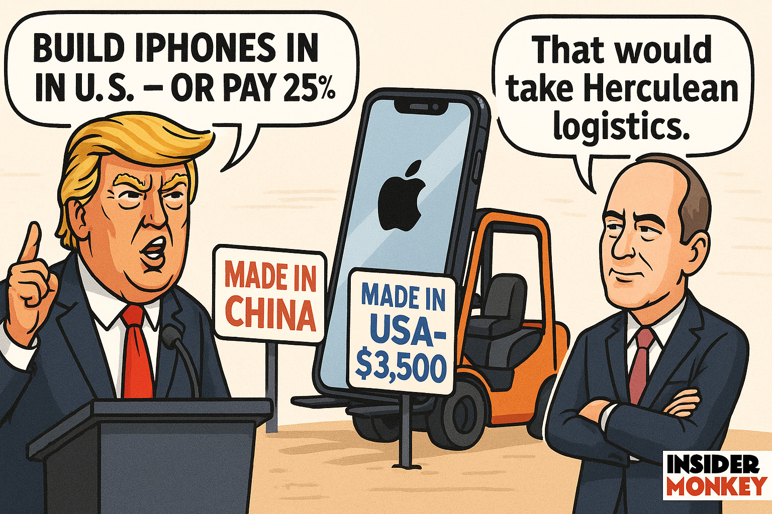 “I have long ago informed Tim Cook of Apple that I expect their iPhones that will be sold in the United States of America will be manufactured and built in the United States, not India, or anyplace else. If that is not the case, a Tariff of at least 25% must be paid by Apple to the U.S.”