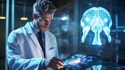 A doctor using a Neuromodulation device to examine a patient’s brain activity.