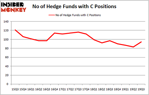Citigroup Inc. (NYSE:C) has experienced an increase in hedge fund interest of late. C was in 94 hedge funds’ portfolios at the end of the third quarter of 2019. There were 83 hedge funds in our database with C positions at the end of the previous quarter. Our calculations also showed that C currently ranks 16th among the 30 most popular stocks among hedge funds (click for Q3 rankings and see the video at the end of this article for Q2 rankings).