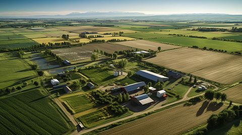 Aerial view of a sprawling farmland, showing the scale of the company’s agricultural business.