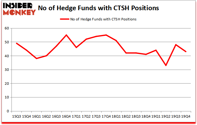 Cognizant Technology Solutions Corp (NASDAQ:CTSH) was in 43 hedge funds’ portfolios at the end of the fourth quarter of 2019. CTSH has seen a decrease in hedge fund sentiment lately. There were 48 hedge funds in our database with CTSH positions at the end of the previous quarter. Our calculations also showed that CTSH isn’t among the 30 most popular stocks among hedge funds (click for Q4 rankings and see the video at the end of this article for Q3 rankings).