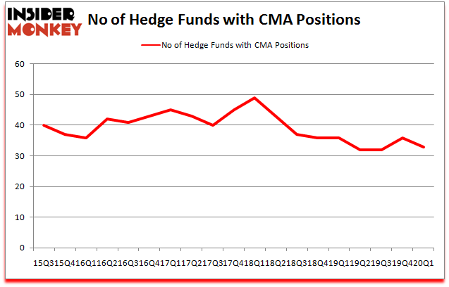 At Q1’s end, a total of 33 of the hedge funds tracked by Insider Monkey were long this stock, a change of -8% from the previous quarter. Below, you can check out the change in hedge fund sentiment towards CMA over the last 18 quarters. With the smart money’s positions undergoing their usual ebb and flow, there exists a few key hedge fund managers who were boosting their holdings significantly (or already accumulated large positions).