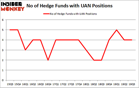 At Q3’s end, a total of 4 of the hedge funds tracked by Insider Monkey were long this stock, a change of 0% from one quarter earlier. By comparison, 2 hedge funds held shares or bullish call options in UAN a year ago. So, let’s see which hedge funds were among the top holders of the stock and which hedge funds were making big moves.