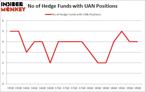 At Q3’s end, a total of 4 of the hedge funds tracked by Insider Monkey were long this stock, a change of 0% from one quarter earlier. By comparison, 2 hedge funds held shares or bullish call options in UAN a year ago. So, let’s see which hedge funds were among the top holders of the stock and which hedge funds were making big moves.