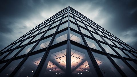 A contemporary banking building, its geometric facade conveying its modernity and corporate stature.