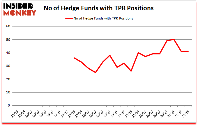 At third quarter’s end, a total of 41 of the hedge funds tracked by Insider Monkey were long this stock, a change of 0% from one quarter earlier. On the other hand, there were a total of 39 hedge funds with a bullish position in TPR a year ago. With hedge funds’ capital changing hands, there exists a few noteworthy hedge fund managers who were boosting their stakes meaningfully (or already accumulated large positions).