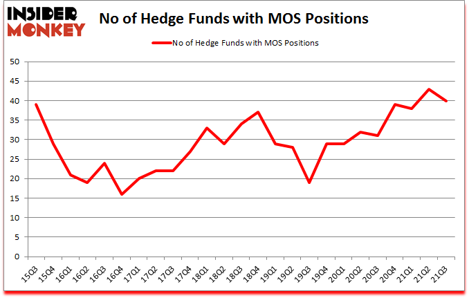 The Mosaic Company (NYSE:MOS) was in 40 hedge funds’ portfolios at the end of the third quarter of 2021. The all time high for this statistic is 43. MOS shareholders have witnessed a decrease in hedge fund interest of late. There were 43 hedge funds in our database with MOS positions at the end of the second quarter. Our calculations also showed that MOS isn’t among the 30 most popular stocks among hedge funds (click for Q3 rankings).