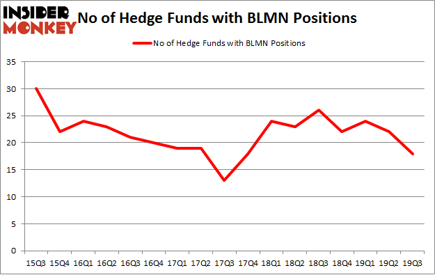Heading into the fourth quarter of 2019, a total of 18 of the hedge funds tracked by Insider Monkey were bullish on this stock, a change of -18% from the previous quarter. Below, you can check out the change in hedge fund sentiment towards BLMN over the last 17 quarters. With hedgies’ positions undergoing their usual ebb and flow, there exists a few key hedge fund managers who were adding to their holdings meaningfully (or already accumulated large positions).