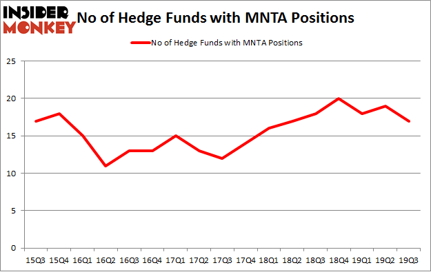 At Q3’s end, a total of 17 of the hedge funds tracked by Insider Monkey were long this stock, a change of -11% from one quarter earlier. Below, you can check out the change in hedge fund sentiment towards MNTA over the last 17 quarters. So, let’s examine which hedge funds were among the top holders of the stock and which hedge funds were making big moves.